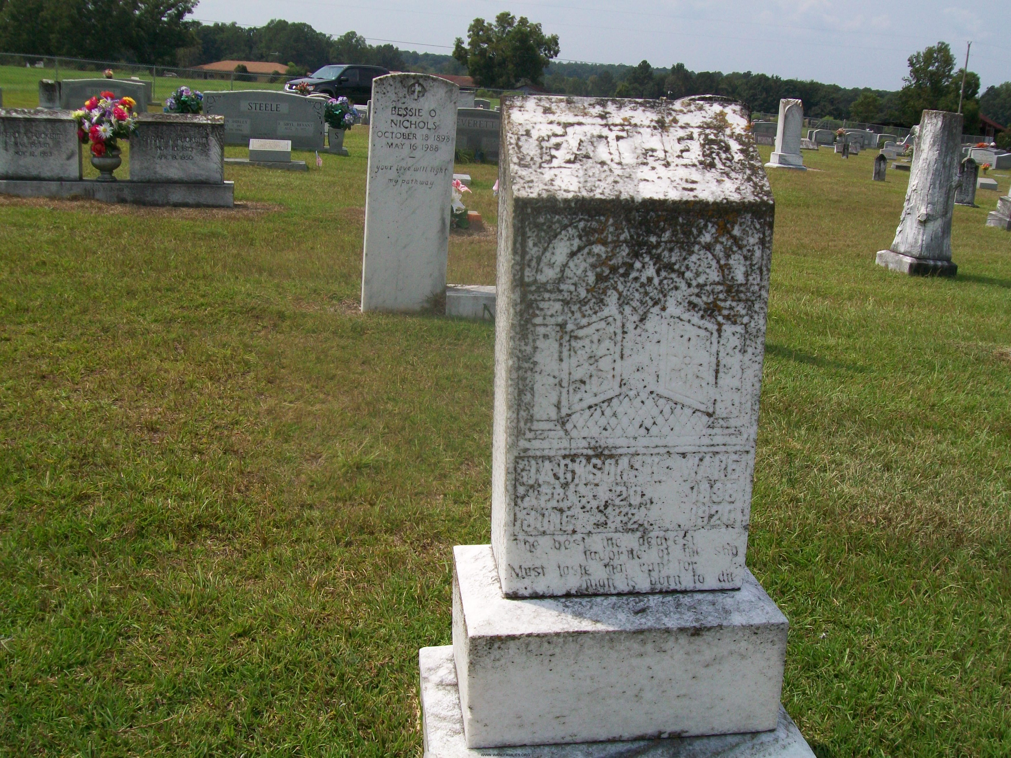 On this page, several of the 9 pictures of Wares are at another cemetery other than the old Ware cemetery. Where is the larger cemetery located? Thanks